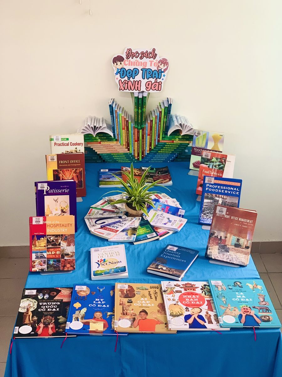 Chào mừng Ngày Sách và Văn hoá đọc Việt Nam 21/4. Trung tâm CNTT&TV trưng bày giới thiệu tài liệu chuyên ngành du lịch bằng tiếng Anh, kỹ năng phát triển bản thân…Kính mời các thầy cô cùng các em sinh viên đến tham khảo tài liệu, check in từ ngày 17/4-24/4